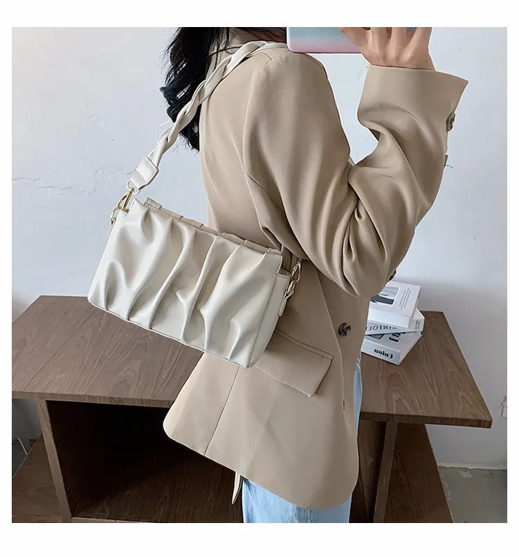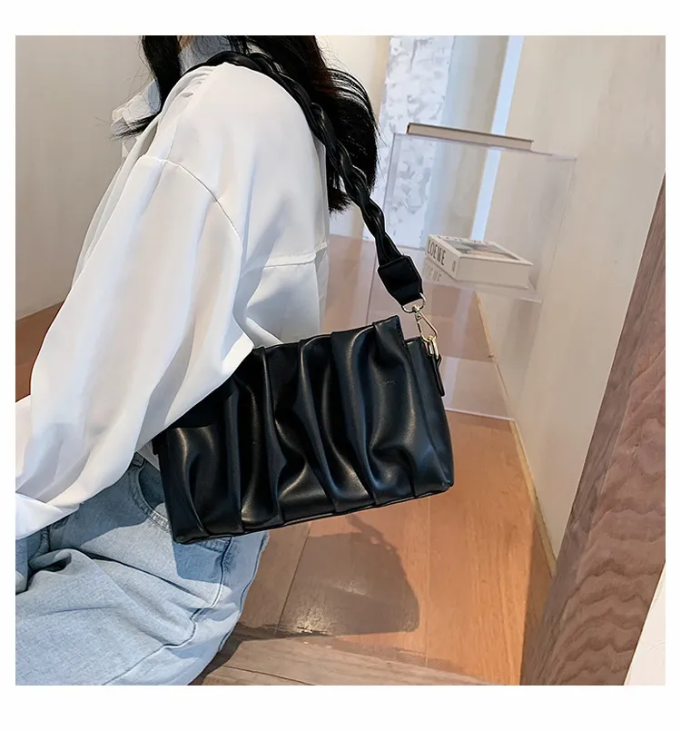 Made with premium materials, the New Fashionable Pleated Shoulder Crossbody Bag is designed for durability and comfort. The exterior is crafted from high-grade PU leather, offering a smooth finish that’s easy to clean and maintain. Inside, the soft lining protects your belongings while ensuring a lightweight feel for all-day comfort.