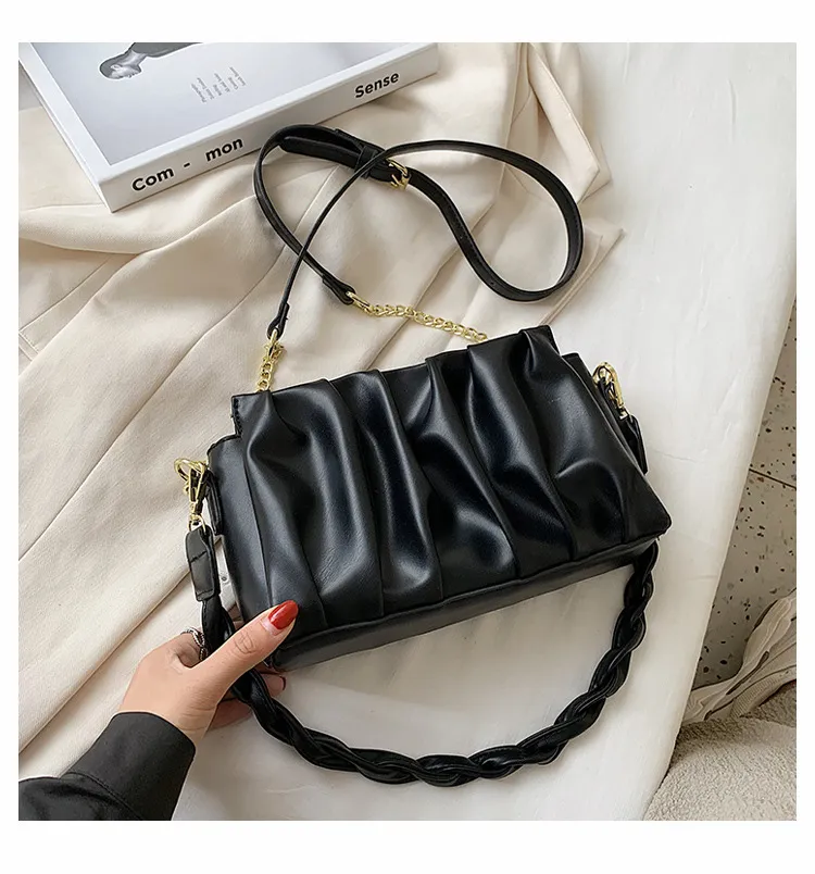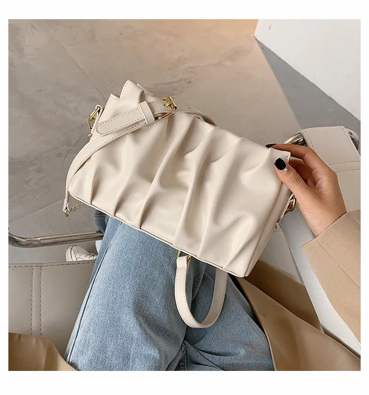 H1: New Fashionable All-Match Pleated Shoulder Crossbody Fashion Chain Small Square Bag