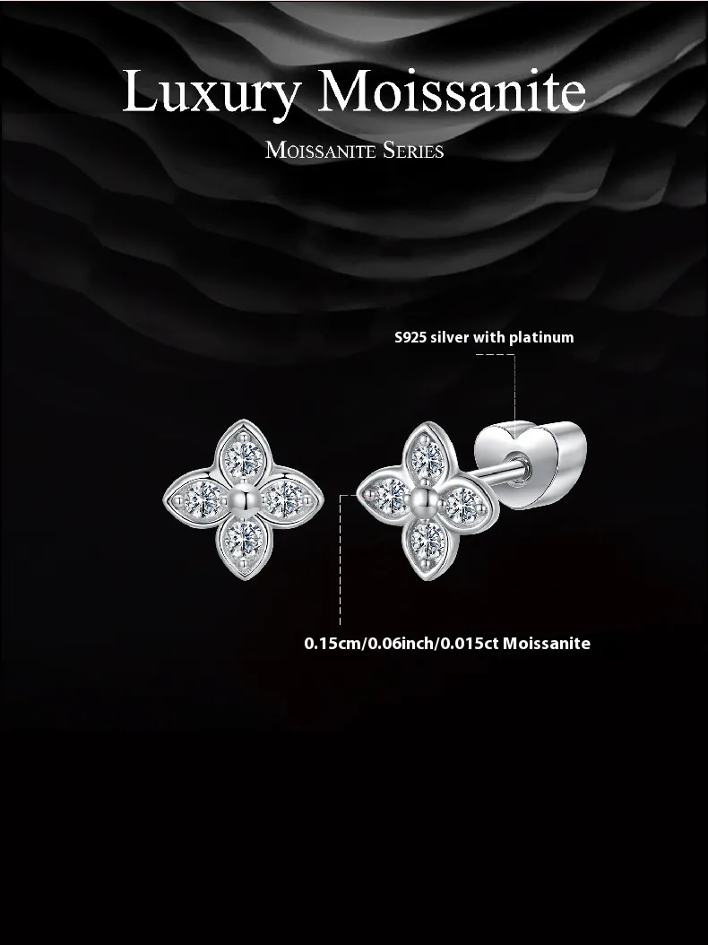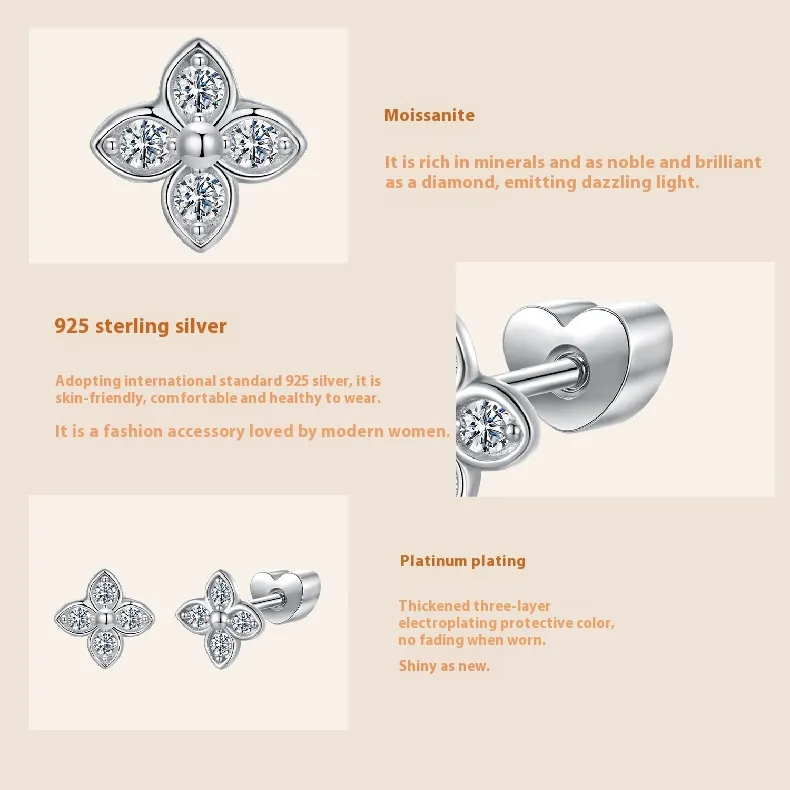 New Four-leaf Clover Moissanite Ear Studs