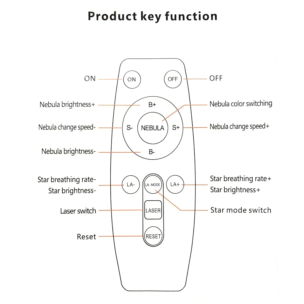 control. The button on the back can only turn on the projector, Nebula & star switch, and a long press to turn it off; The remote