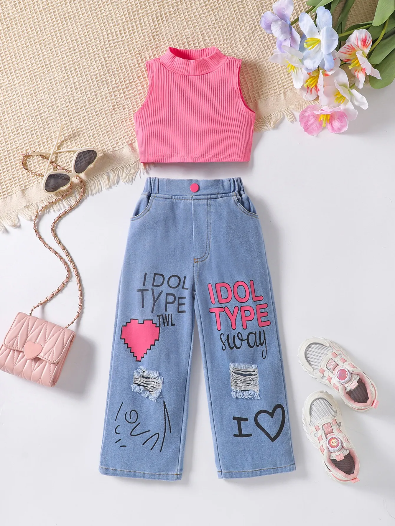 Crafted from soft, breathable fabric, this sleeveless vest ensures all-day comfort while allowing freedom of movement for active girls. The bold letter design adds a touch of personality and modern style, making it easy to pair with skirts, shorts, trousers, or leggings. Lightweight and durable, it is easy to wash and maintain, ideal for everyday wear.