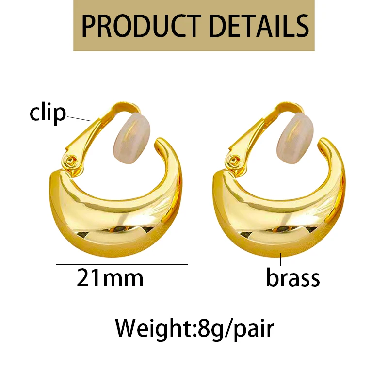 New Gold Color Round Chunky Clip-On Earrings for Women