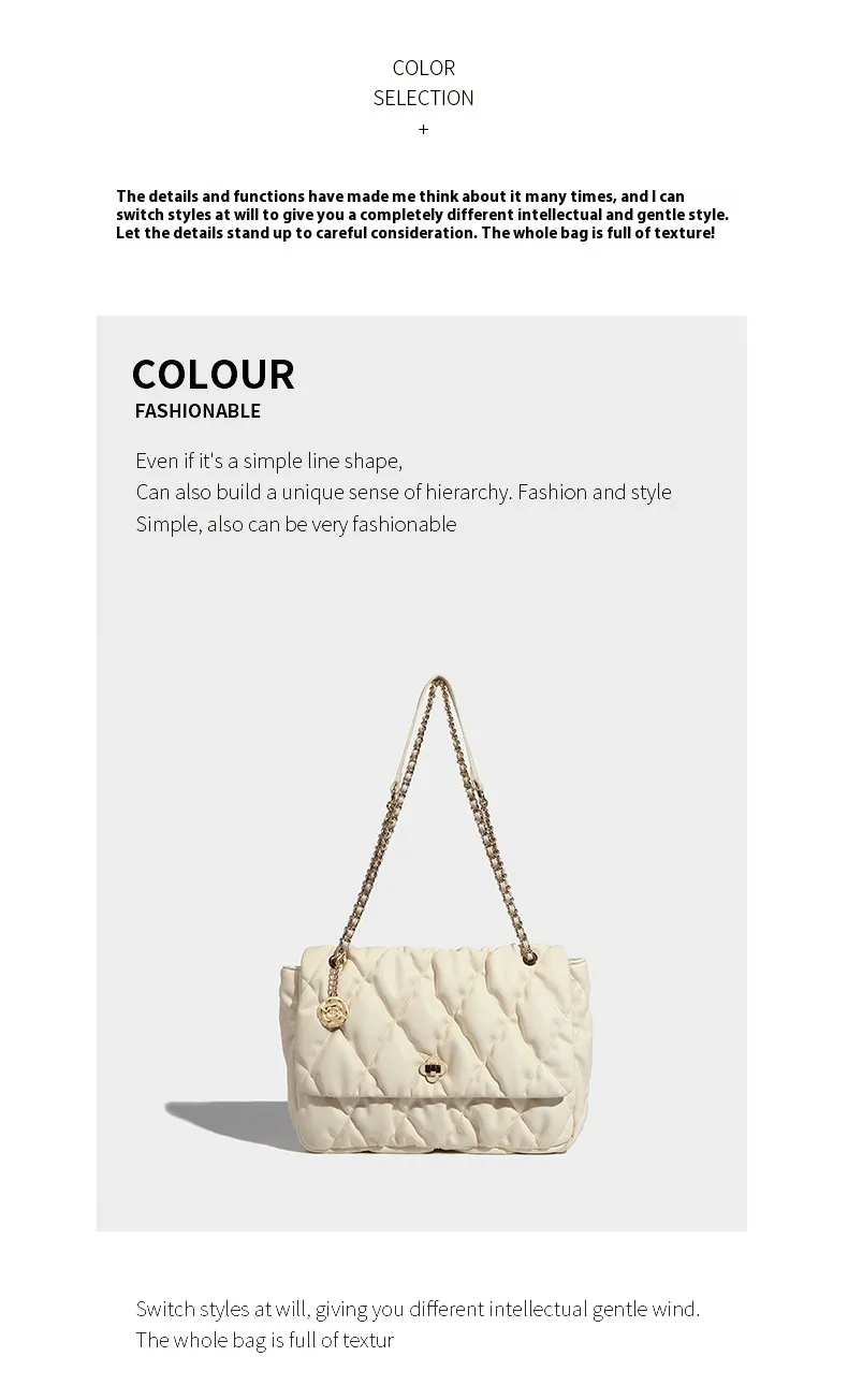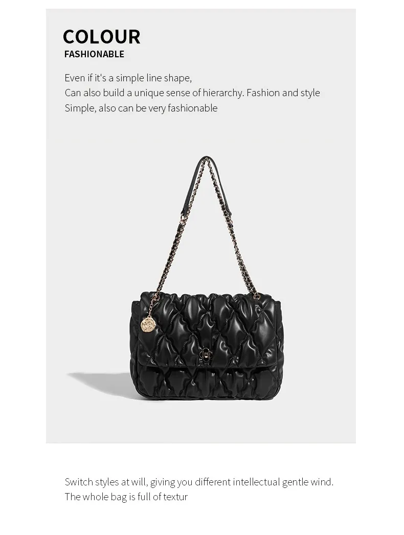 This high-end messenger bag is designed for women who not only want a functional accessory but also value the art of fashion. With its niche appeal and luxurious texture, this bag elevates any look and is sure to make a statement wherever you go. Its versatility and premium materials make it a standout piece in any wardrobe, offering both style and utility.