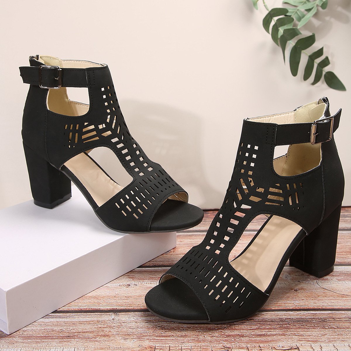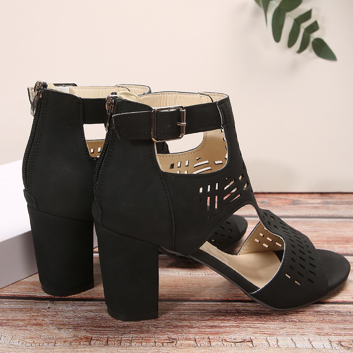 Home › Plants, Gifts, Toys & More › Gift-tree-new-high-square-heel-hollow-roman-shoes-with-back-zipper-for-women