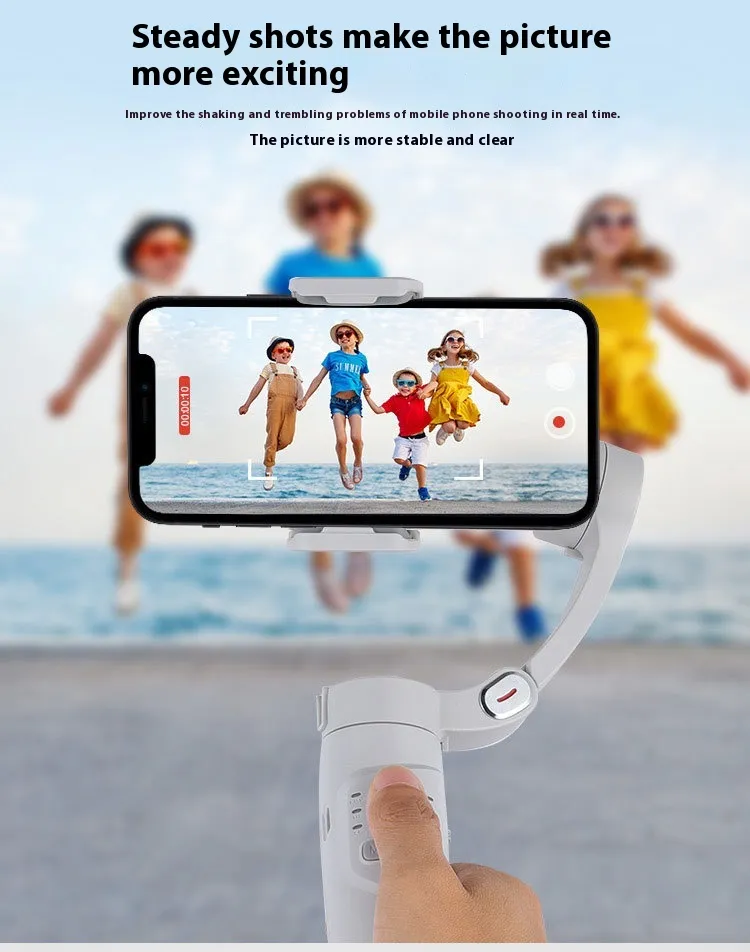 Equipped with a foldable tripod base and ergonomic grip, the stabilizer allows for hands-free shooting and smooth panning movements, eliminating shaky footage. Its universal phone holder fits most smartphones securely, making it easy to switch between portrait and landscape modes.