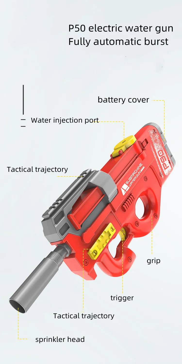 Inspired by the look of high-tech guns, the New P90 Electric Water Gun features a sleek, modern design that makes it stand out. The