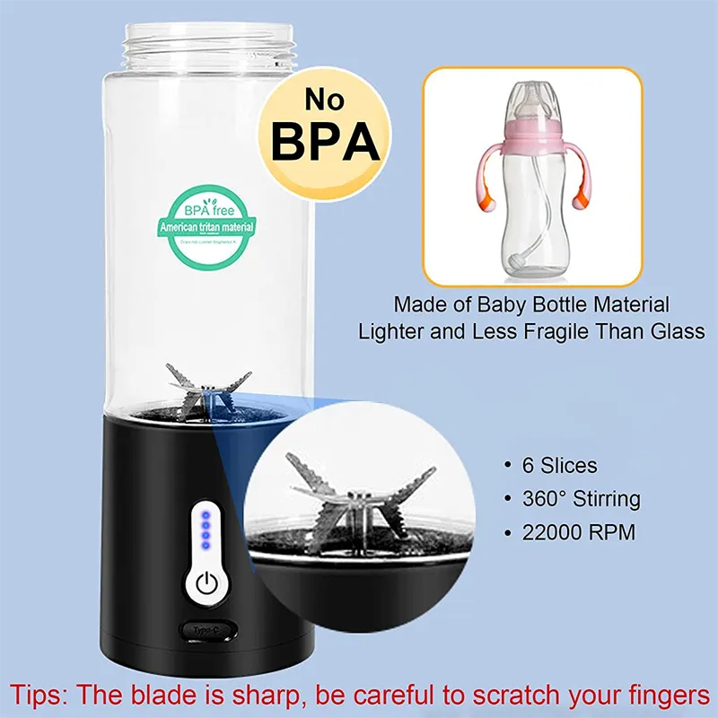 - Easy to Clean: This portable blender is made with high-quality, easy-to-clean materials. Simply rinse it under water or disassemble it for a more thorough cleaning.