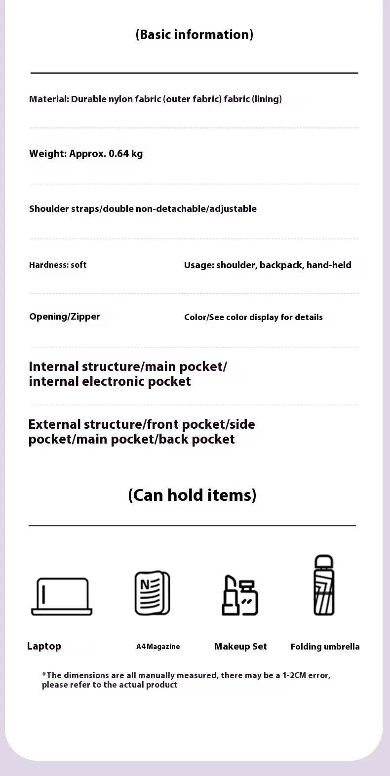 Comfortable Double-shoulder Design: The backpack features adjustable, padded shoulder straps that offer extra comfort,