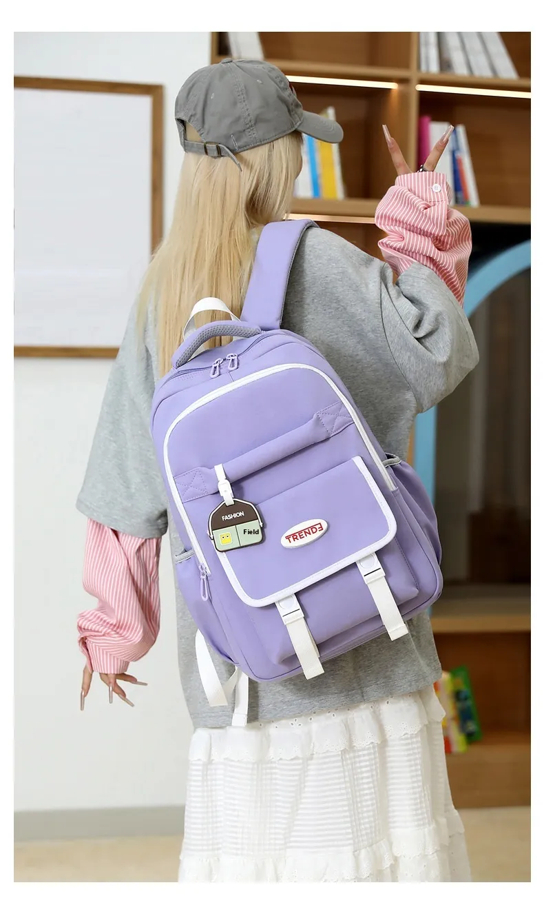 Key Features of New Preppy Style Girls Casual Multicolor Lightweight Double-shoulder Backpack