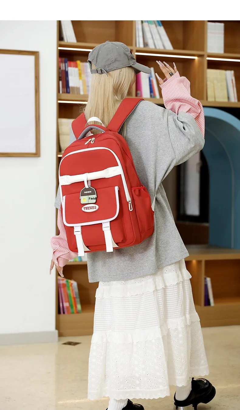 Key Features of New Preppy Style Girls Casual Multicolor Lightweight Double-shoulder Backpack