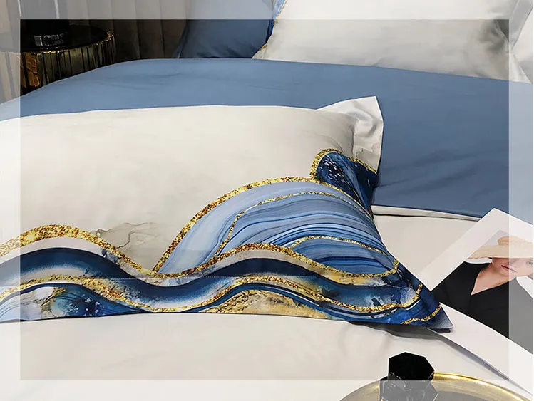 Elevate your bedroom decor with the Digital Printed Cotton Four-Piece Abstraction bedding set, where contemporary artistry meets unparalleled comfort. This exquisite set is designed to bring a splash of modern elegance and vibrant abstract designs into your sleeping space, transforming your bedroom into a serene and stylish sanctuary. Crafted from high-quality cotton, this four-piece set ensures a soft, breathable, and luxurious feel, perfect for a restful night's sleep.