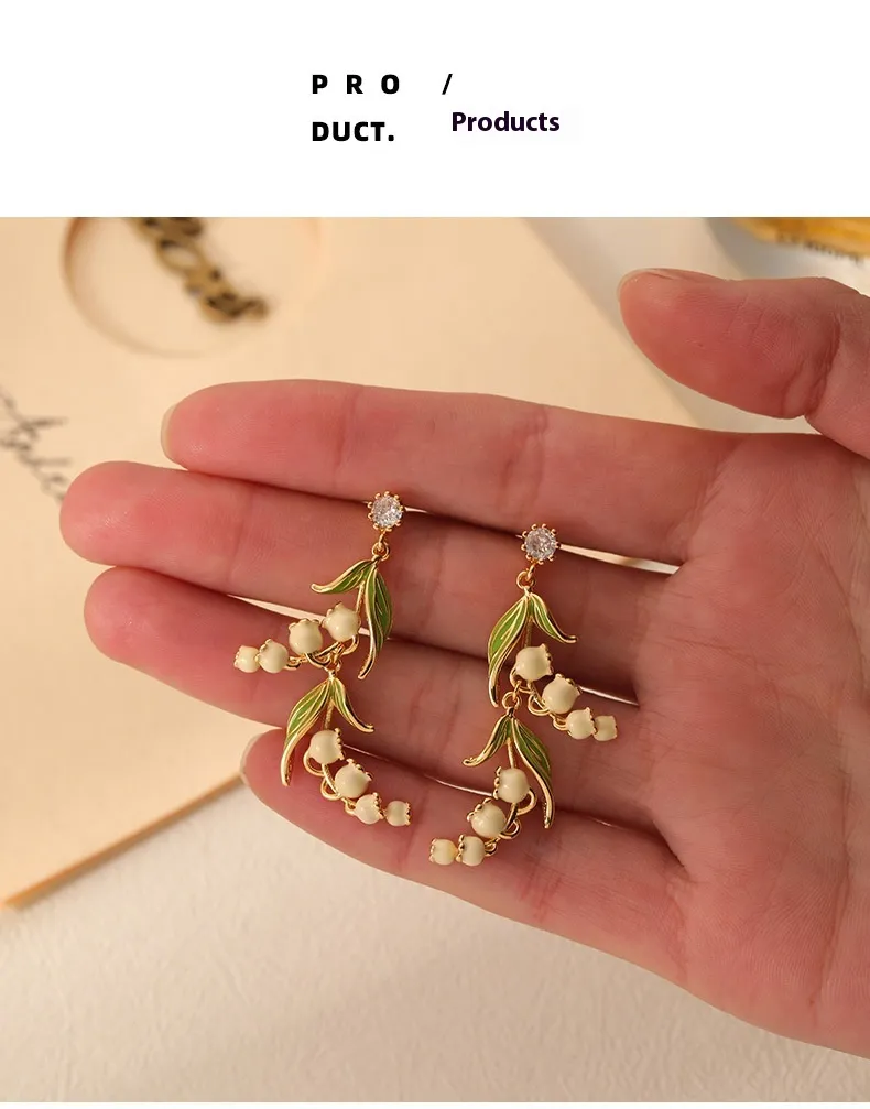 Product Description: New Retro Temperament Lily Long Enamel Earrings for Women