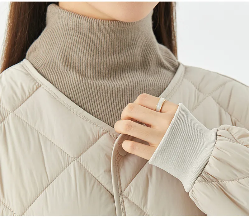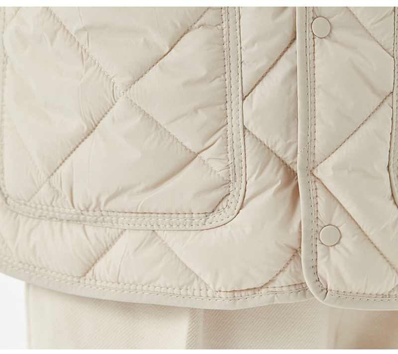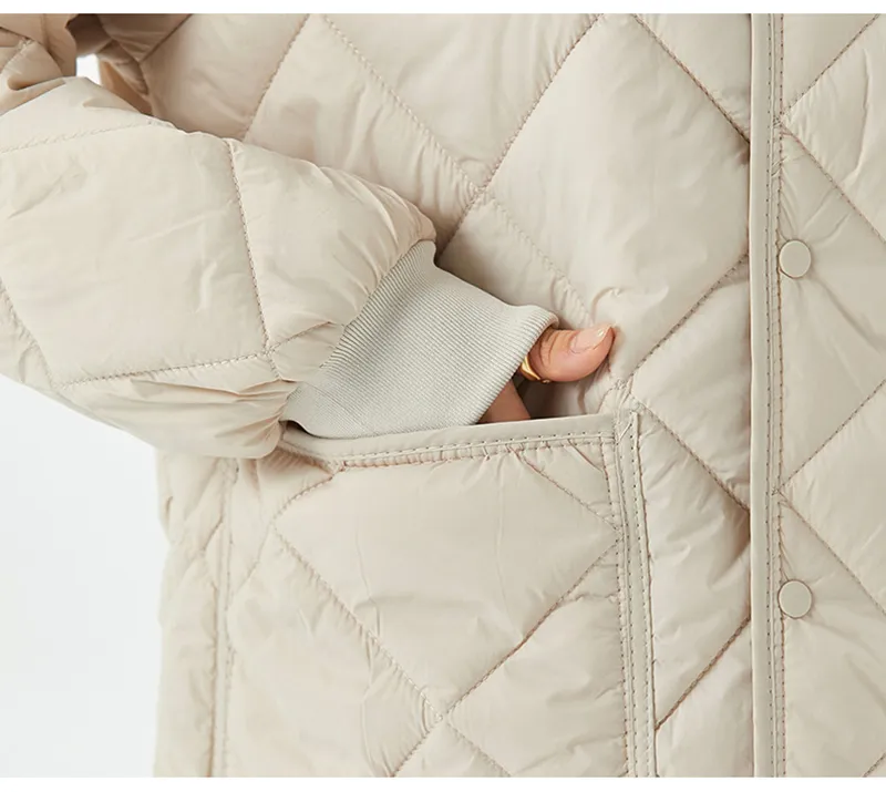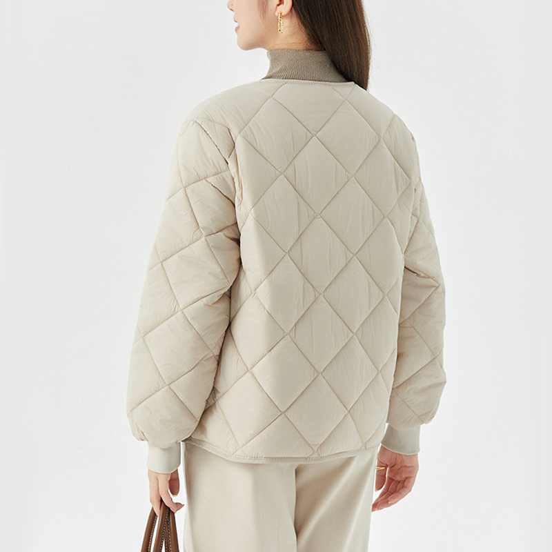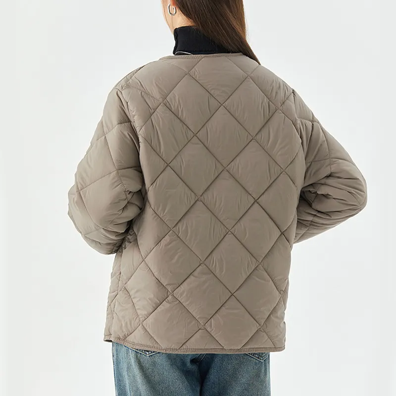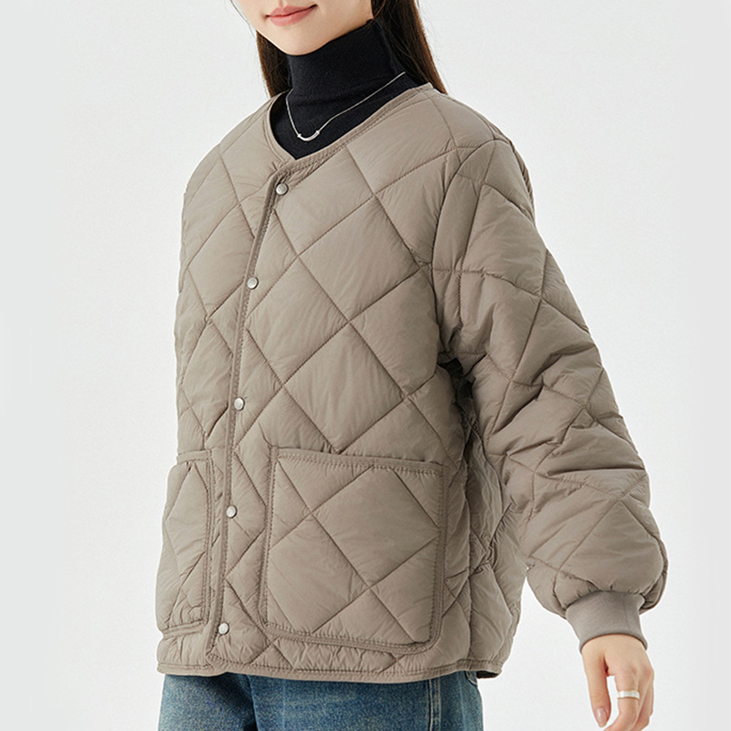New Rhombus Sewing Cotton Coat Winter Warm Round-neck Jacket With Pockets Lightweight Outerwear For Women's Clothing