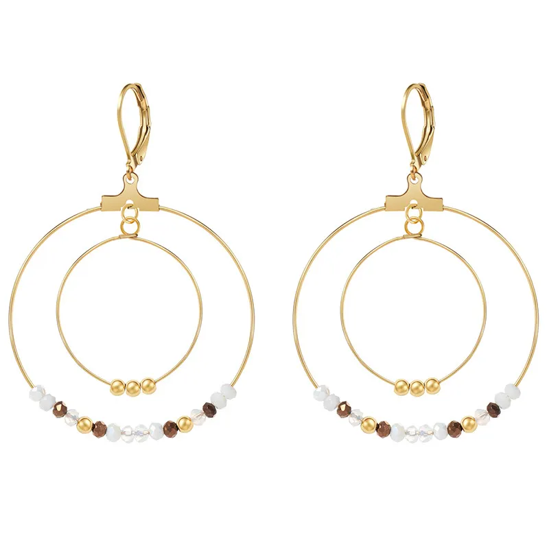 The ring design adds a touch of modernity and complements the natural stone pendants, creating a balanced, elegant look that is both fashionable and timeless. The minimalist approach to design ensures that the earrings can be paired with a wide variety of outfits, from casual attire to evening wear.