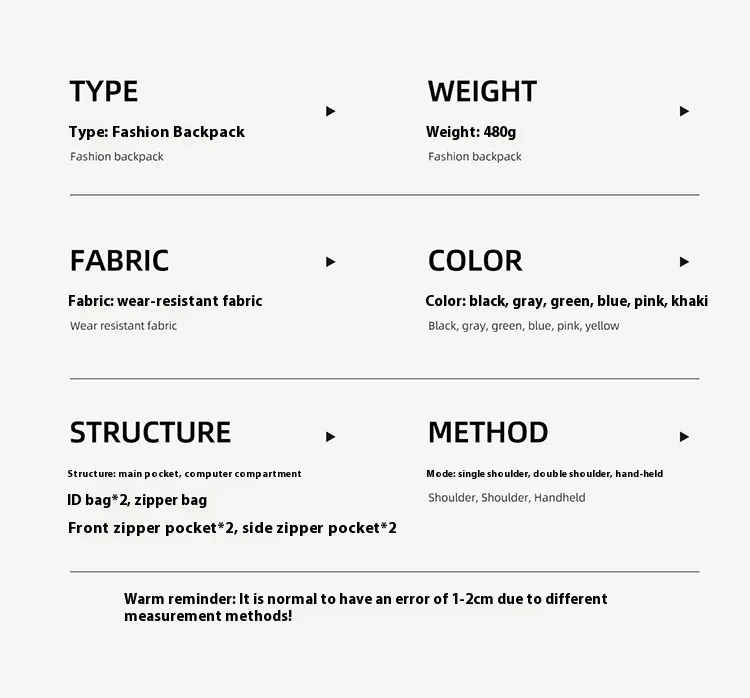 - Durability: The wearproof fabric ensures the backpack withstands daily use.