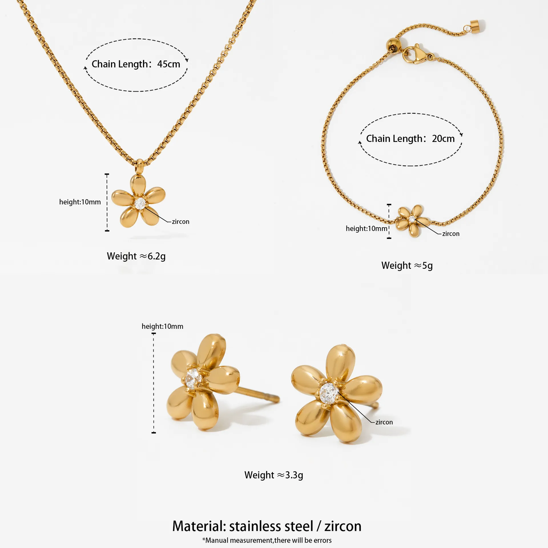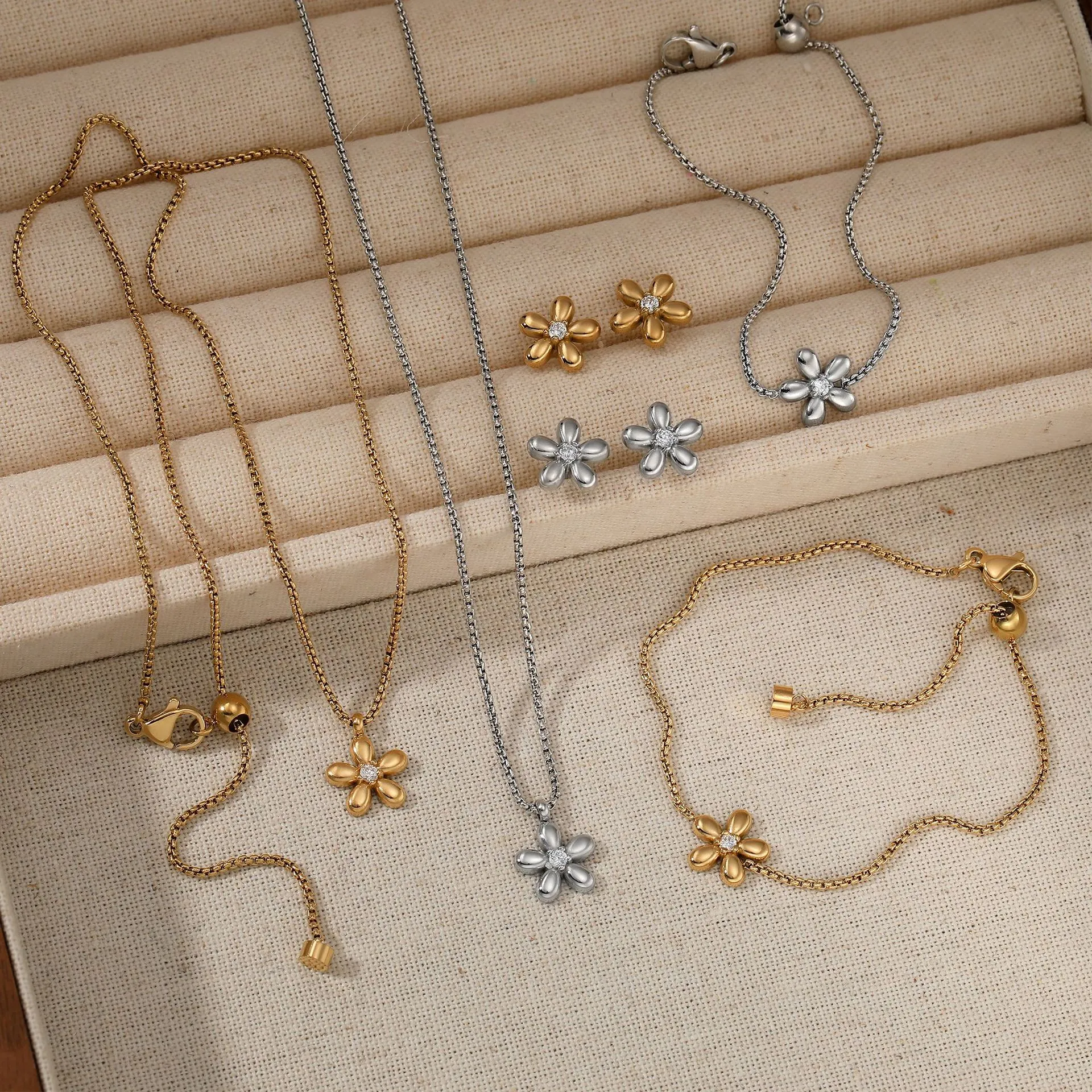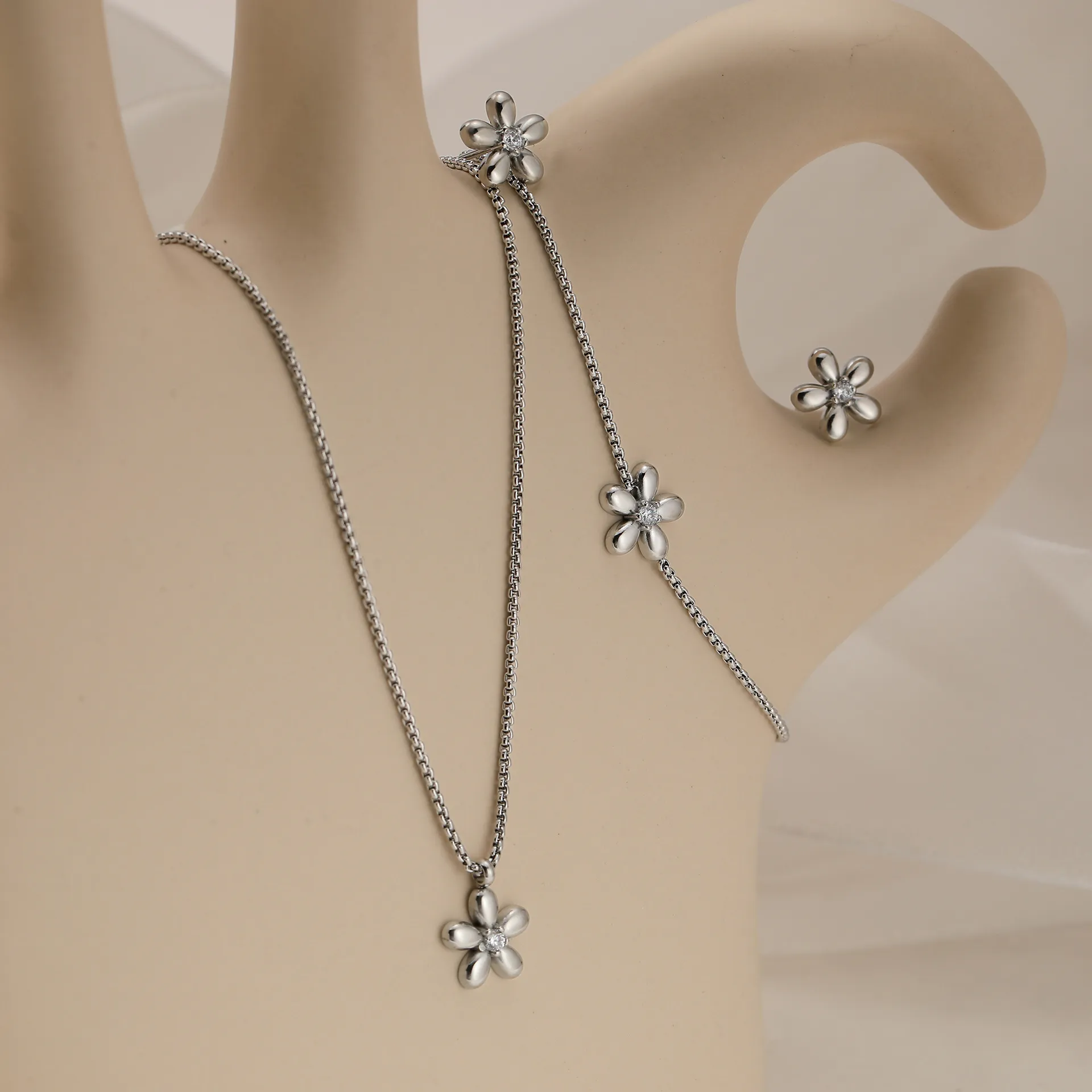 New Stainless Steel Flower Jewelry Set – Bracelet, Necklace & Earrings