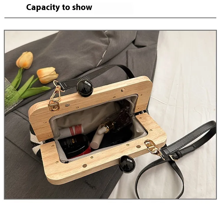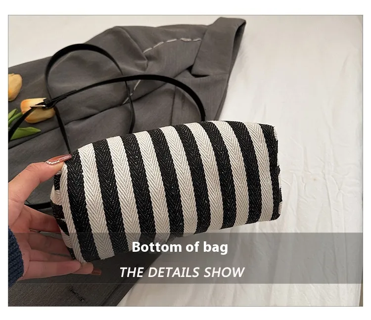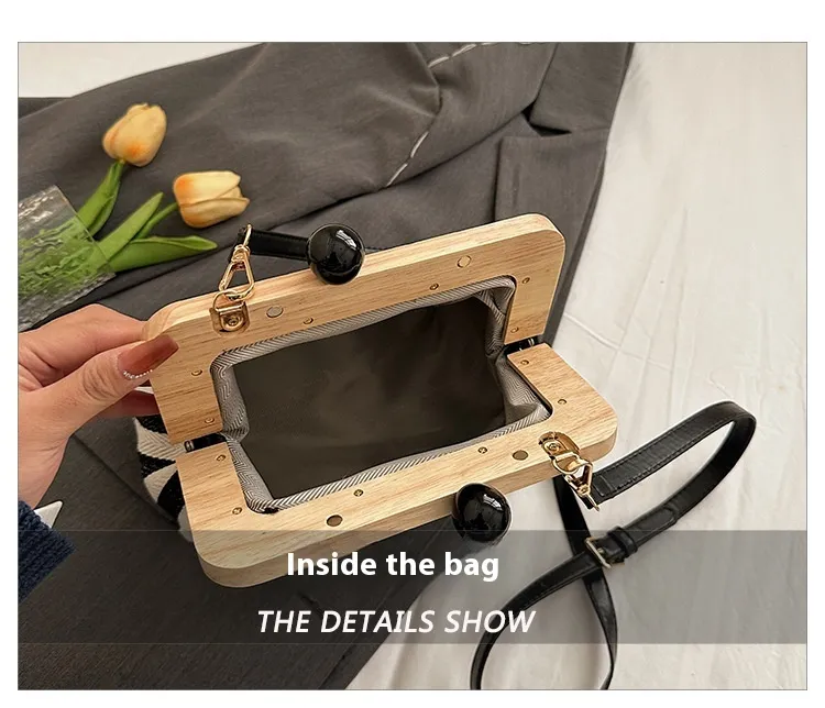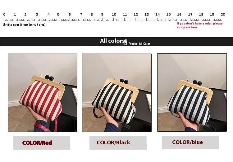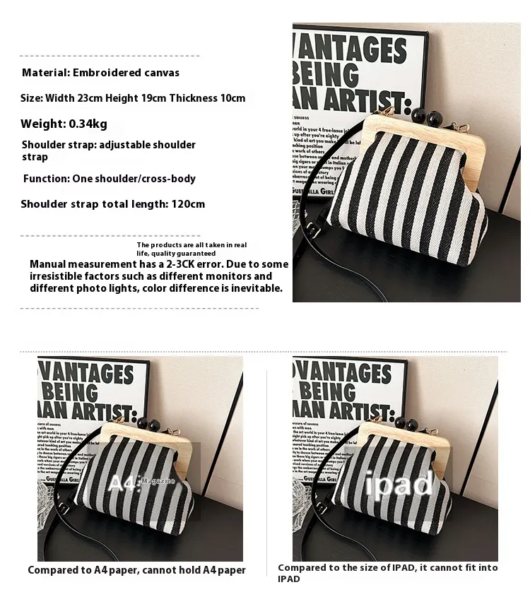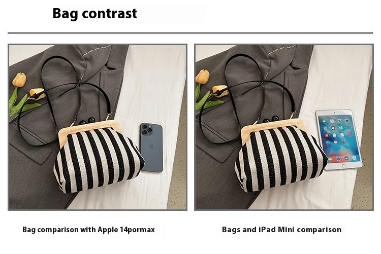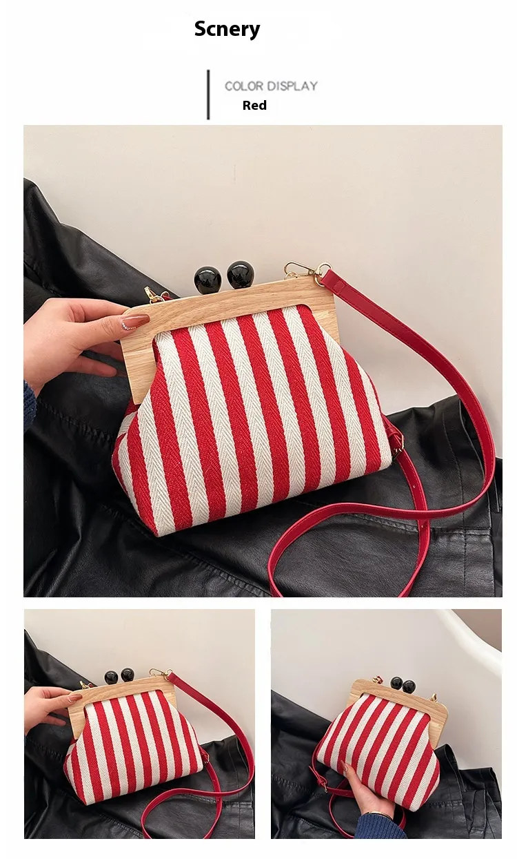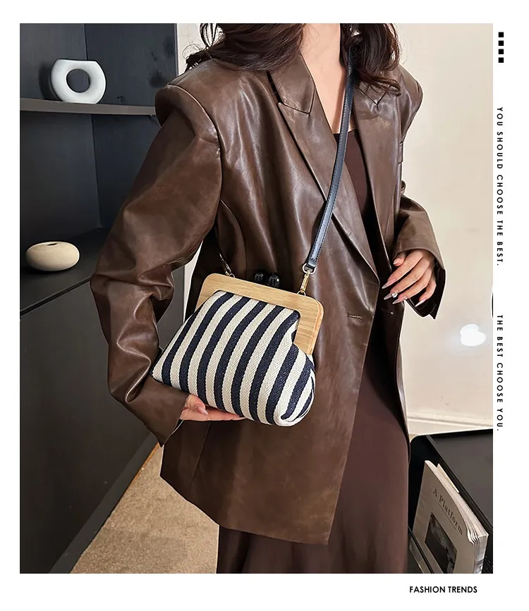 New Striped Canvas Wooden Clip-mouth Clutch