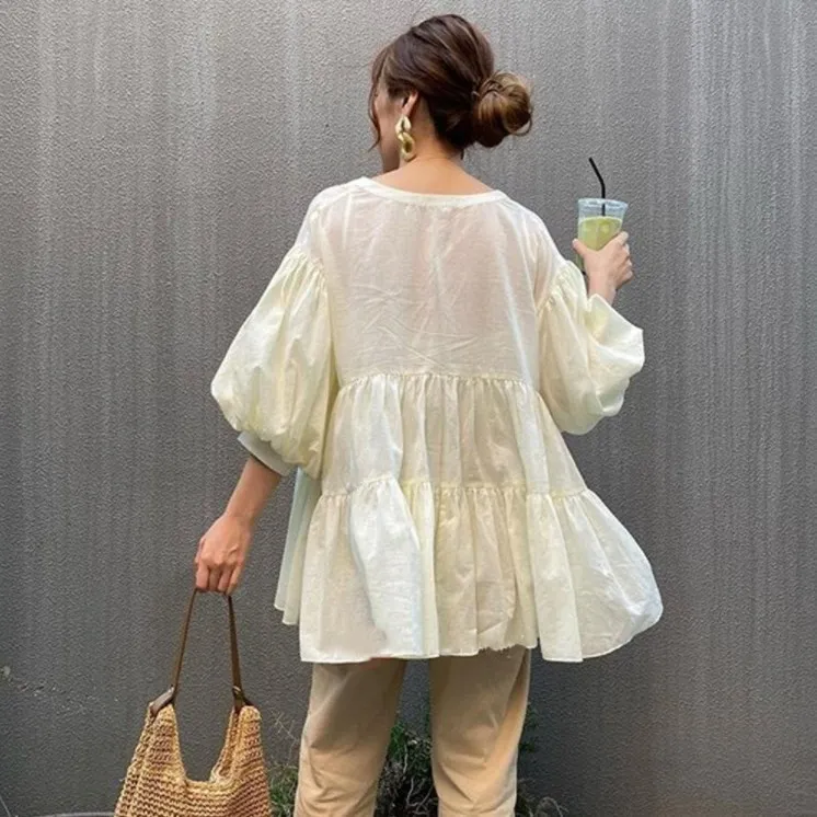 New Style Loose Slimming Top Mid-Length Single-Breasted Solid Color Shirt