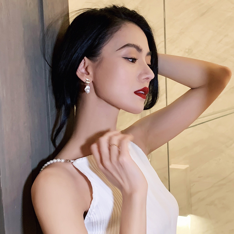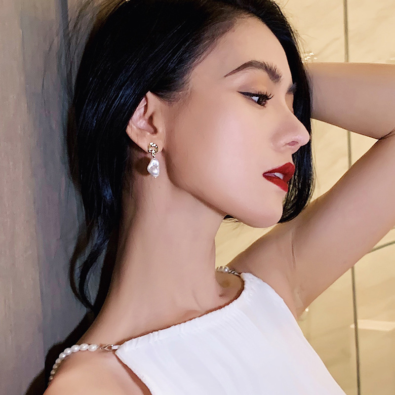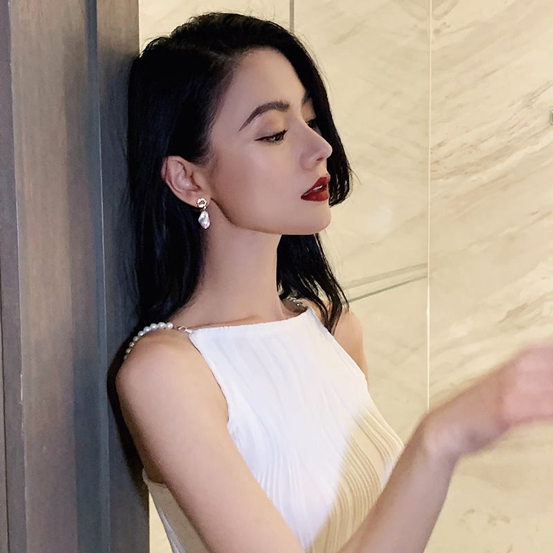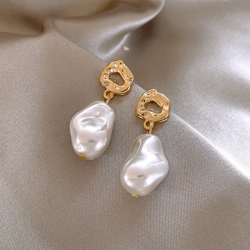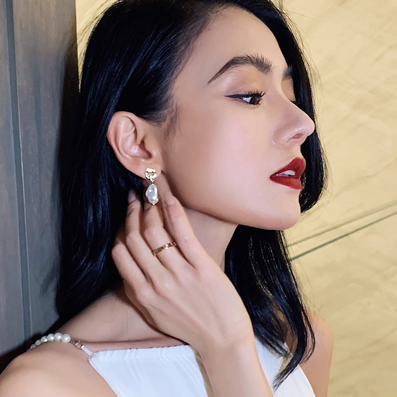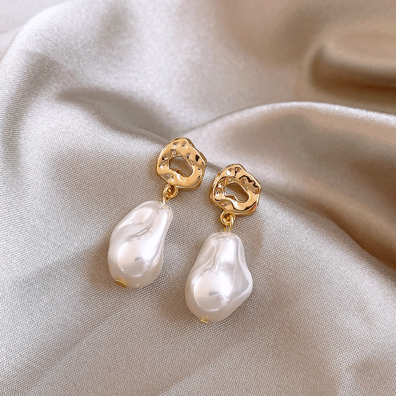 New Trendy Elegant Pendant 925 Silver Needle French Baroque Artificial Pearl Earrings Women