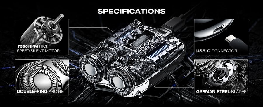 Sharp stainless steel turbo whirl blade, specializing in hard beard, 0.1mm thin stainless steel foil, double ring 3D knife net, increase shaving volume, floating arc surface smooth and remove hair from your skin.