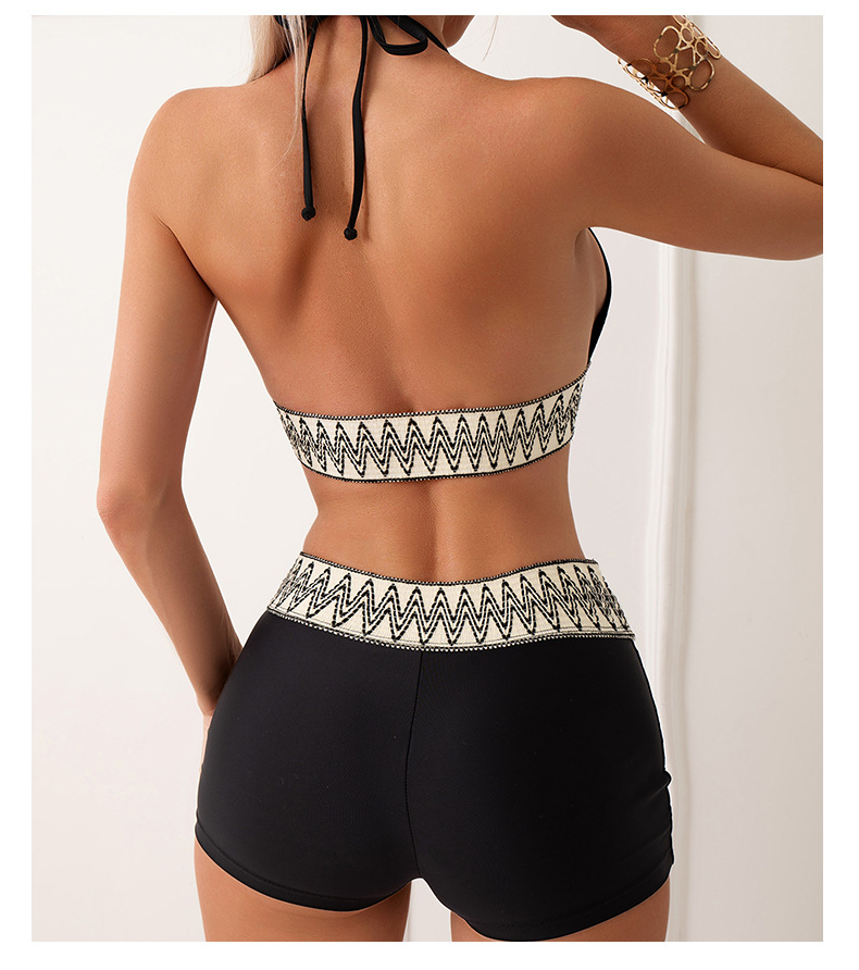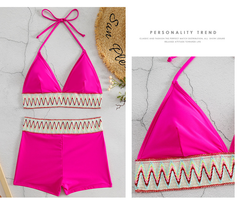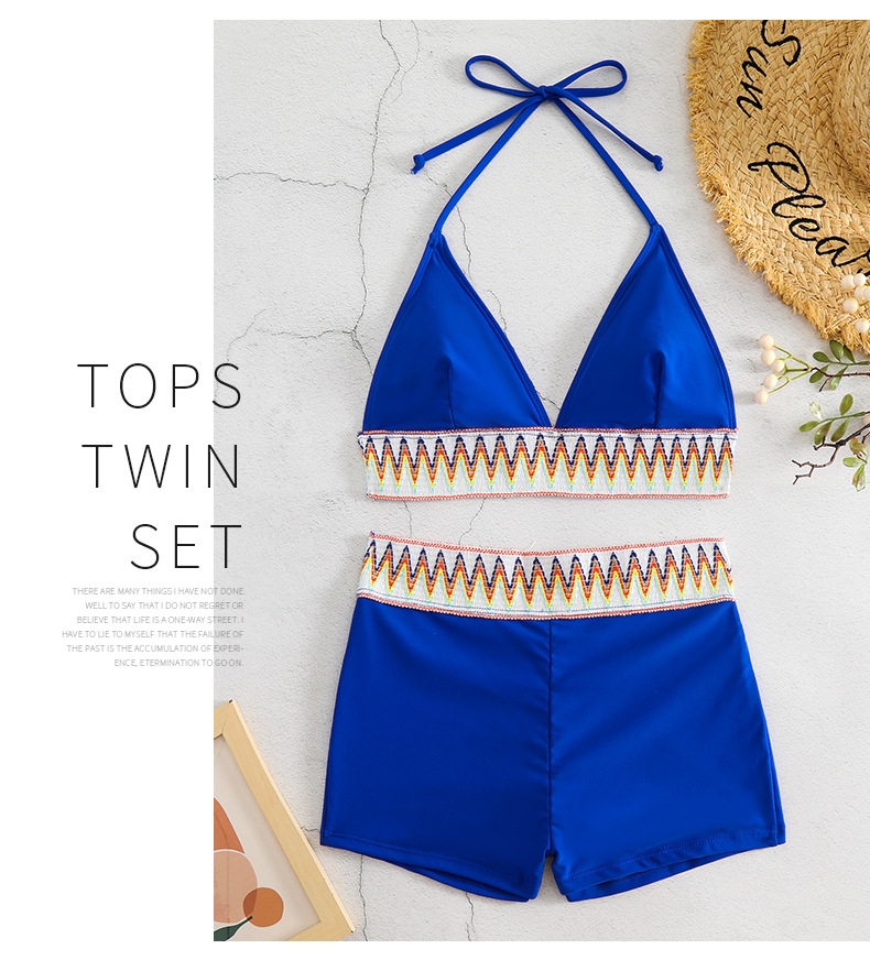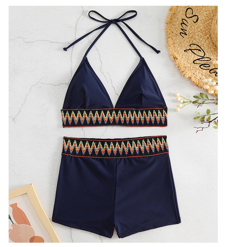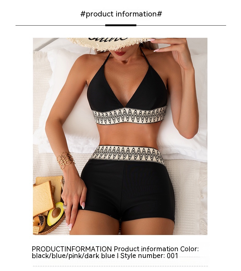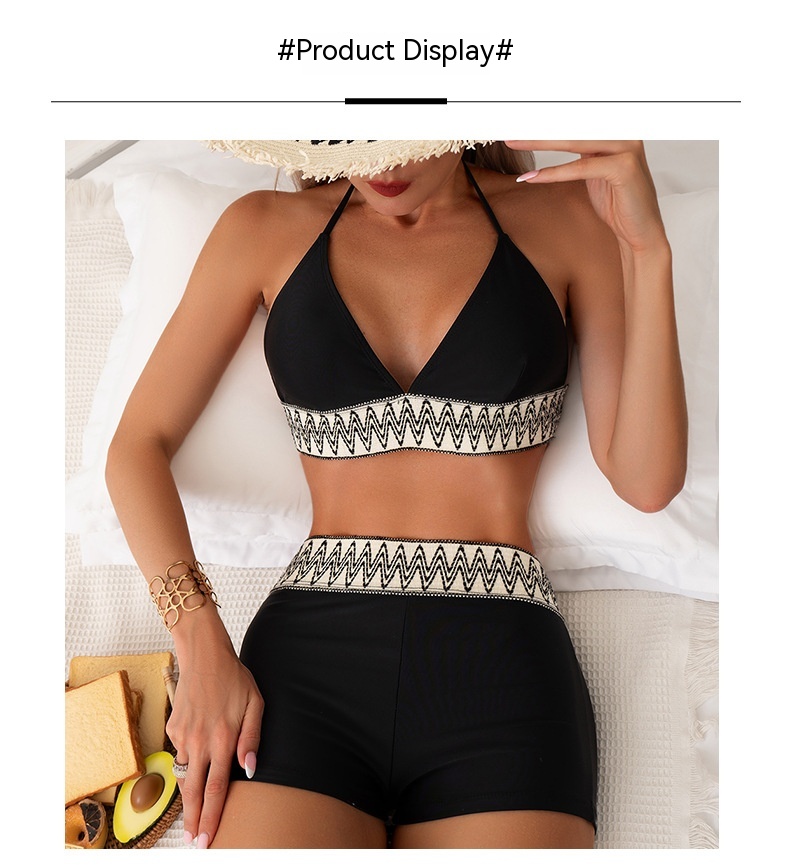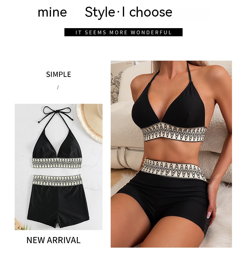 New Women's High Waist Pure Color Boxers Split Swimsuit