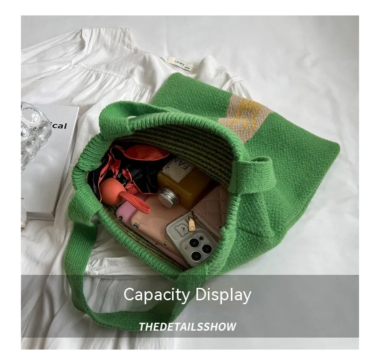 New Wool Bag Women's Large Capacity Knitted Handbag Cute Rabbit Commuter Shoulder Bag