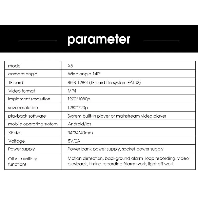 HD1080P Video Quality: Capture clear and detailed footage with 1080P high-definition video quality. The X5 mini camera