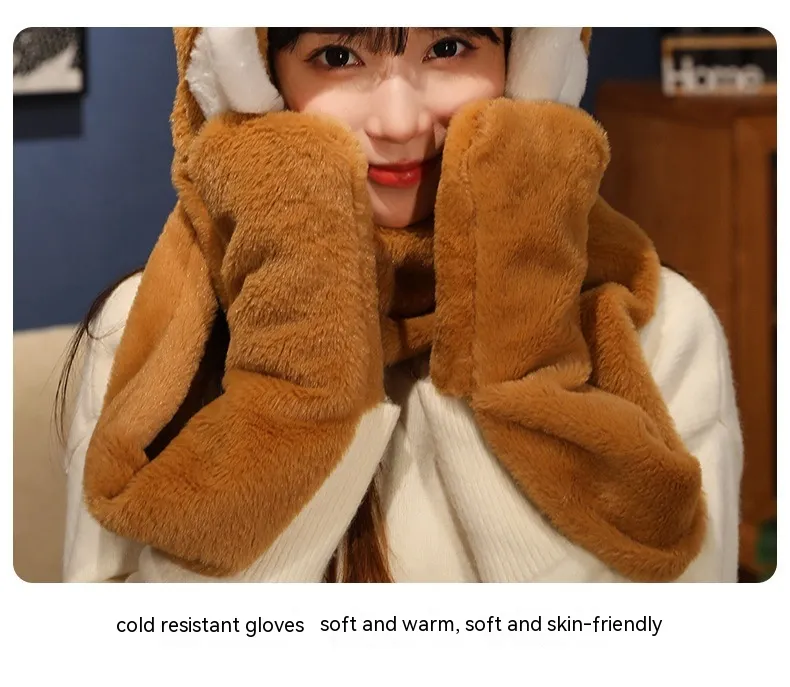 New Year Gift Cute Bear Hat Scarf Gloves Three-in-one
