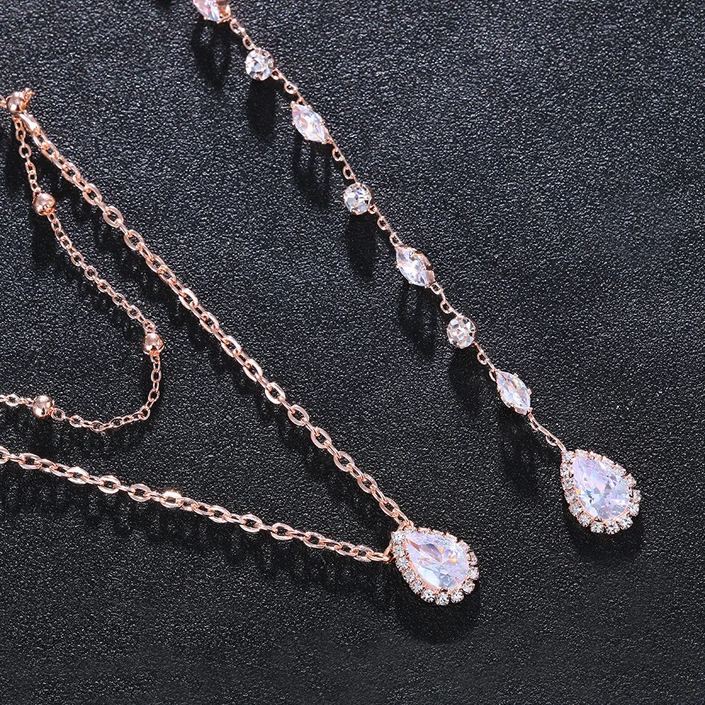 New Zirconium Water Drop Necklace Stone Back Chain