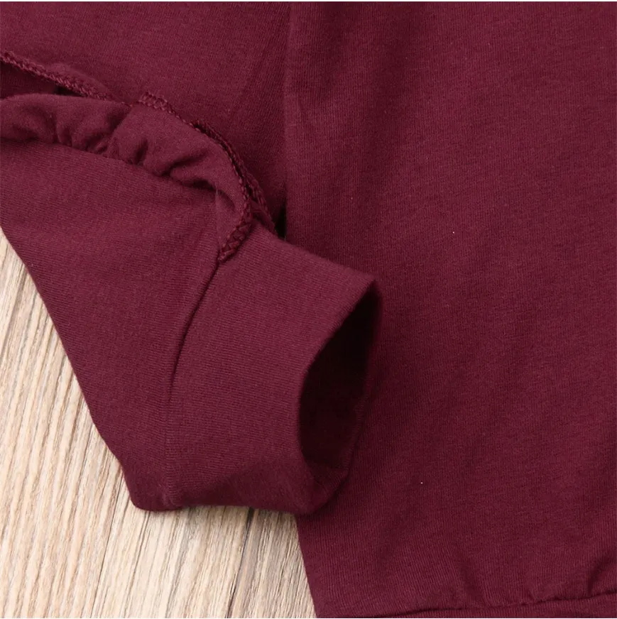 The ruffled jumper top adds a cute and playful touch to the outfit, with its long sleeves providing full coverage to keep your baby warm in the fall breeze. The solid color makes it easy to mix and match with other wardrobe pieces, while the soft cotton blend ensures your baby’s skin stays irritation-free. The top features subtle ruffle details that elevate the overall look, making it a fashionable choice for both boys and girls.