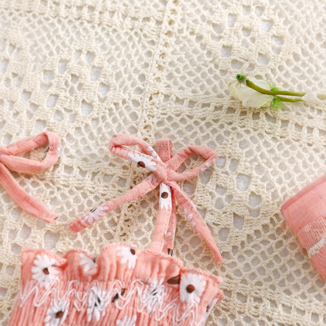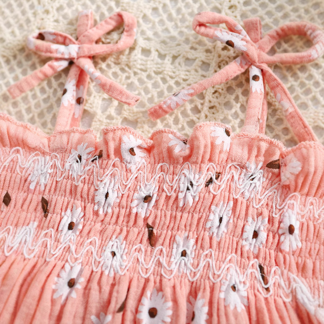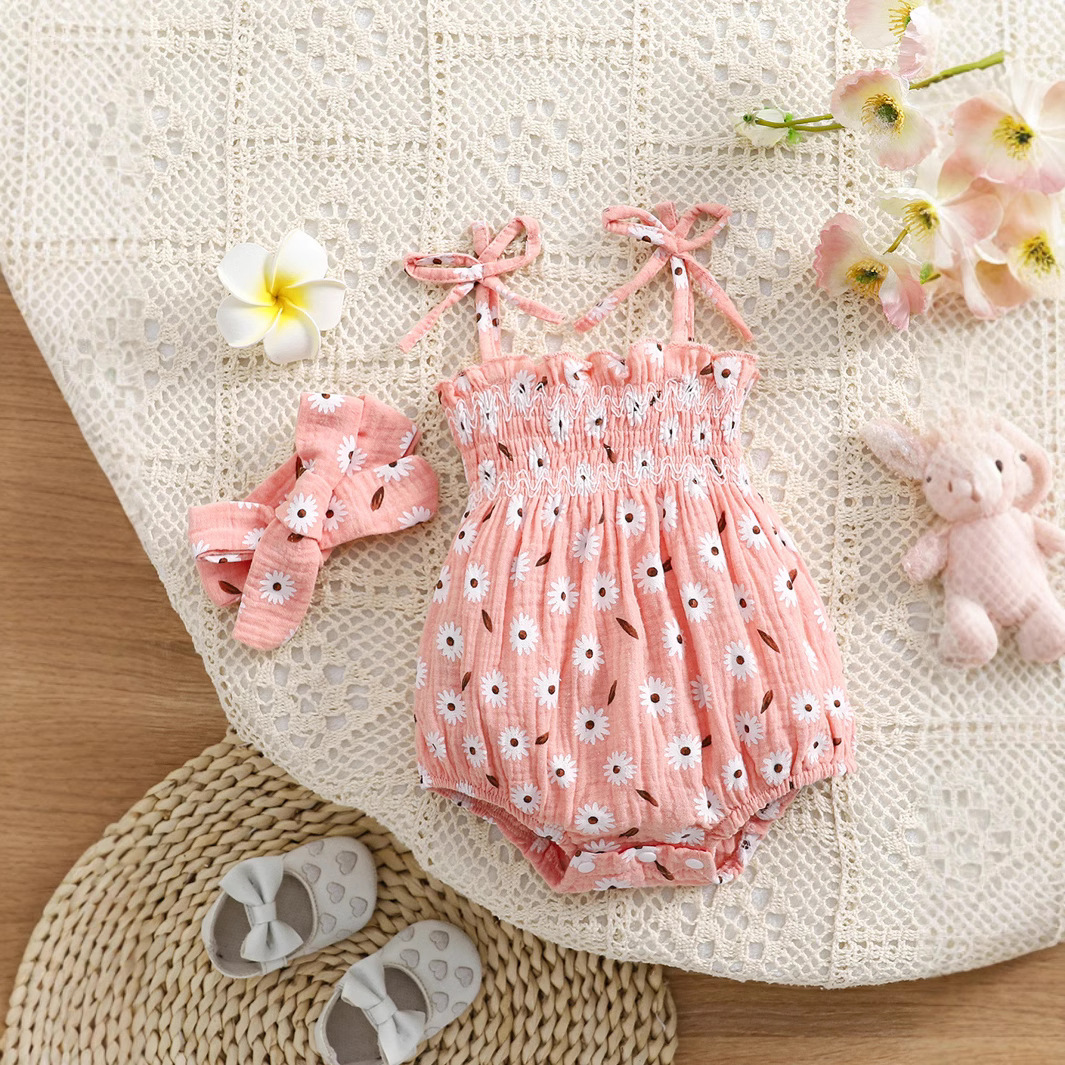 The bow detail and flower print on this romper add an extra layer of charm and sweetness. The bow gives it a feminine touch, while the soft floral pattern brings a vintage appeal to the outfit. Whether for casual wear or a family outing, this romper is a delightful and stylish choice for your baby girl.