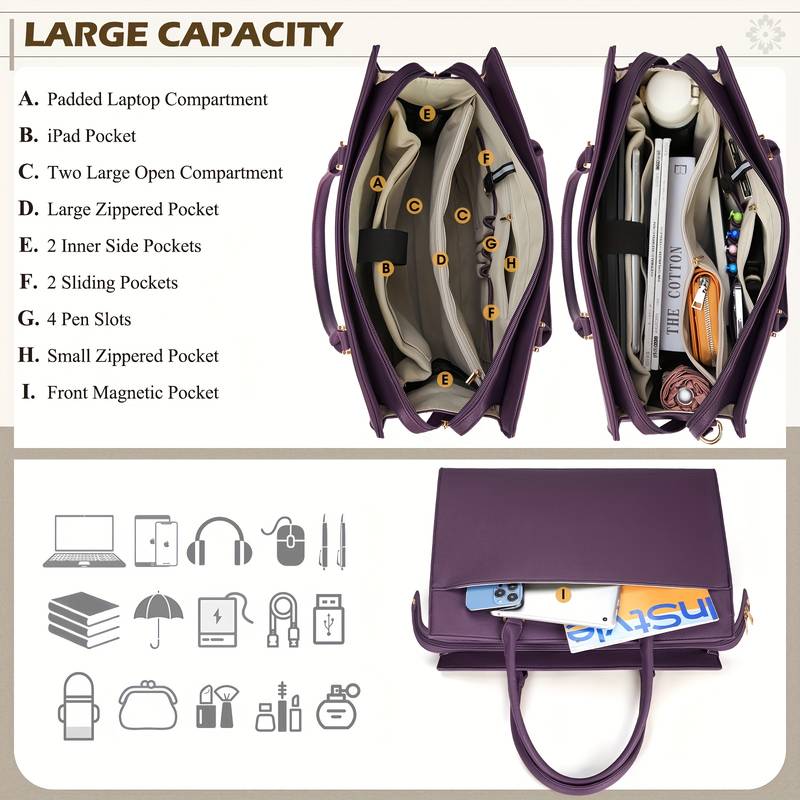 Elegant and Professional Look: The deep purple color enhances your professional appearance and makes the bag stand out in
