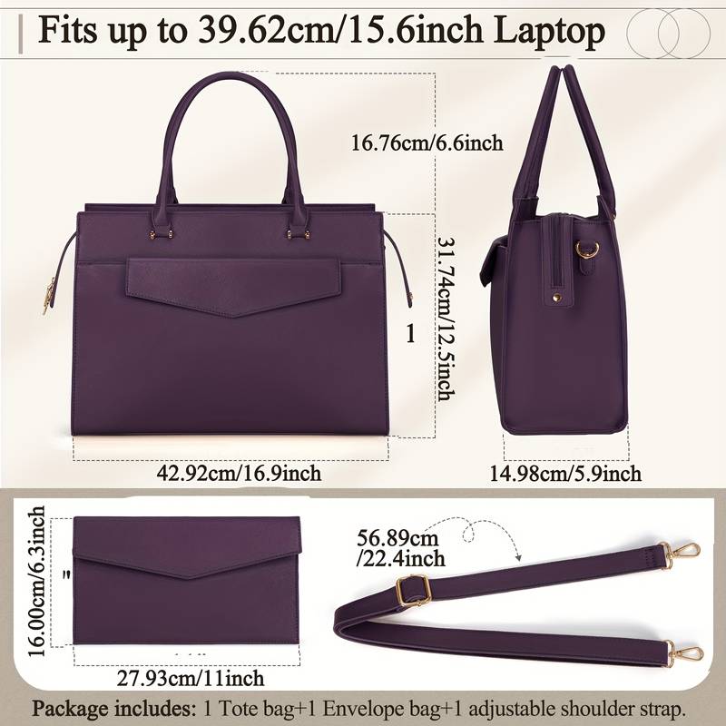 Spacious Design: Includes a large office computer bag and a clutch purse, providing ample space for your laptop and
