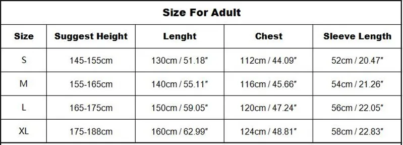 The suit comes in various sizes to fit different body types, ensuring that everyone can enjoy the fun. Check the size guide to find the perfect fit for you or the person you’re buying it for.