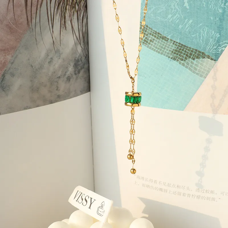 Home › Plants, Gifts, Toys & More › Gift-tree-niche-design-retro-light-luxury-emerald-tassel-pendant-necklace