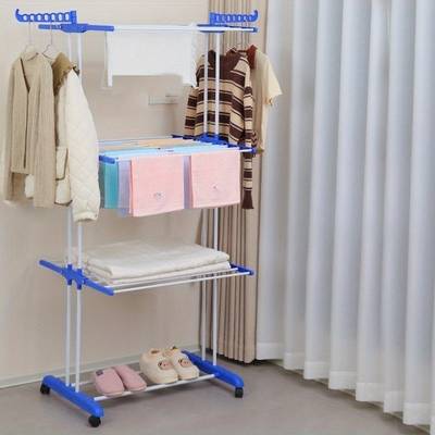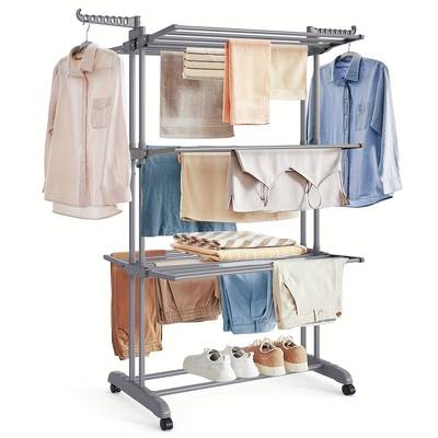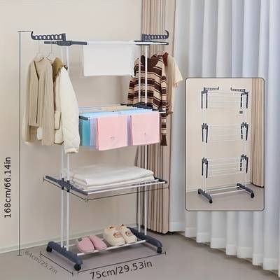 This 4-tier rack provides multiple levels of hanging bars, allowing you to dry more clothes at once. The PVC construction is lightweight, water-resistant, and suitable for both indoor and outdoor use.