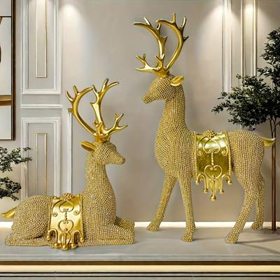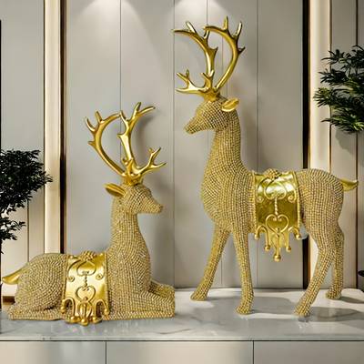 The NLDD Exquisite Deer Resin Craft Set includes a beautifully detailed pair of large resin deer statues with elegant beaded accents. Designed for luxurious home decoration, these statues bring sophistication, charm, and festive beauty to entryways, living rooms, wine cabinets, and office spaces.