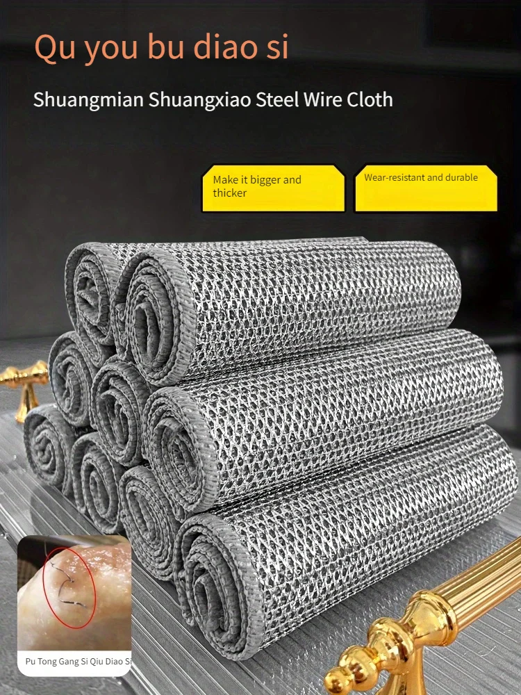 Crafted from high-quality materials, the non-scratch wire dishcloth combines the strength of wire mesh with the gentleness required for delicate surfaces. Its double-sided design features a rough side for tackling stubborn grime and a smoother side for gentle wiping. The oil-proof and easy-rinse properties ensure that the cloth remains clean and odor-free after each use.