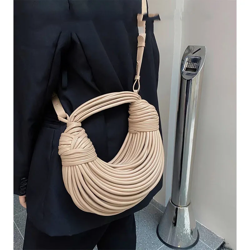 Ideal for New Zealand women who appreciate handmade craftsmanship and want a stylish, functional tote bag that stands out, this noodles handwoven knot dumpling bag is a must-have accessory.