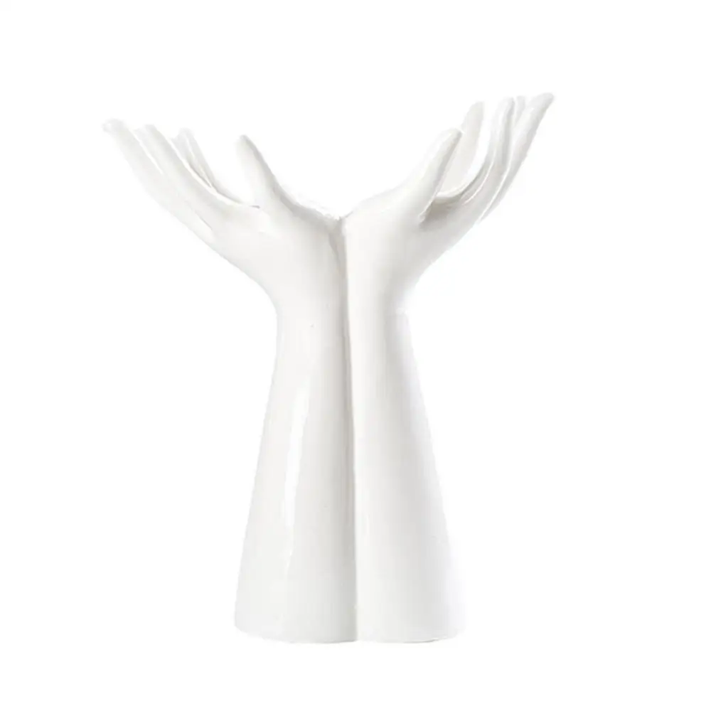 The Ceramic Hand Vase features a smooth, glossy finish that highlights its intricate hand-shaped design. Available in a variety of colors, this vase adds a touch of elegance and creativity to any decor style. The vase's unique shape and modern aesthetic make it a standout piece, whether used as a standalone ornament or as a functional flower vase. Its compact size makes it ideal for placement on tables, desks, shelves, or mantels, enhancing any area with its artistic appeal.