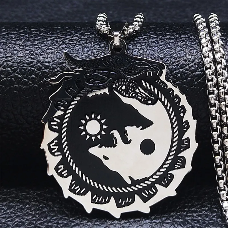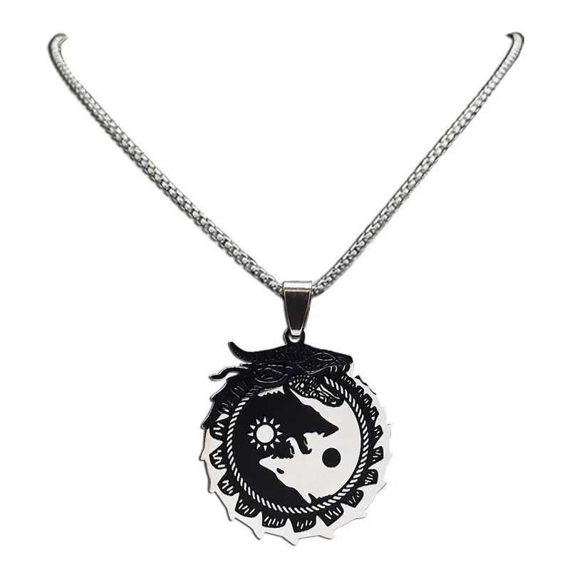 Nordic Viking Celtics Yin And Yang Wolf Dragon Necklace