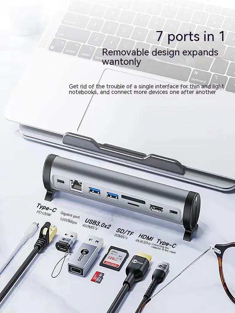 The Notebook Bracket Docking Station Converter is a versatile and functional accessory designed to enhance your laptop experience. This innovative device serves as both a bracket and a docking station converter, allowing you to seamlessly connect your laptop to external monitors, USB devices, and other peripherals. Whether you're working from home, in the office, or on the go, this docking station is the perfect solution for expanding your laptop's functionality while keeping your workspace organized.