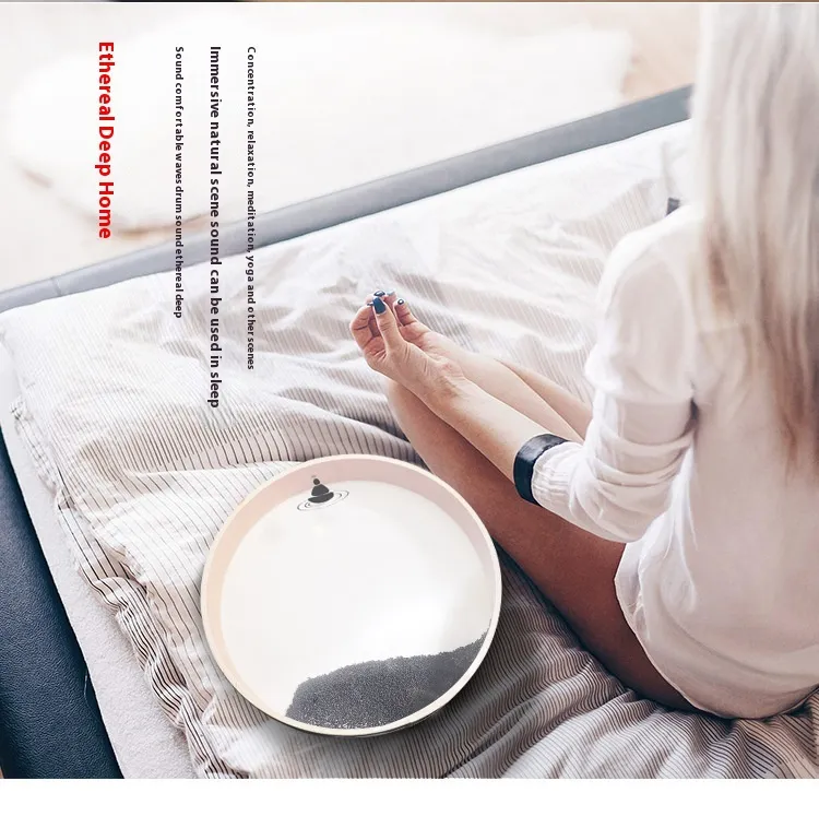 - Relaxing music for stress relief: This water drum instrument for mindful meditation will enhance your yoga or sound healing practice. Its transparent design allows you to watch the graceful motion of beads, creating a perfect harmony of water meditation music and visual spectacle