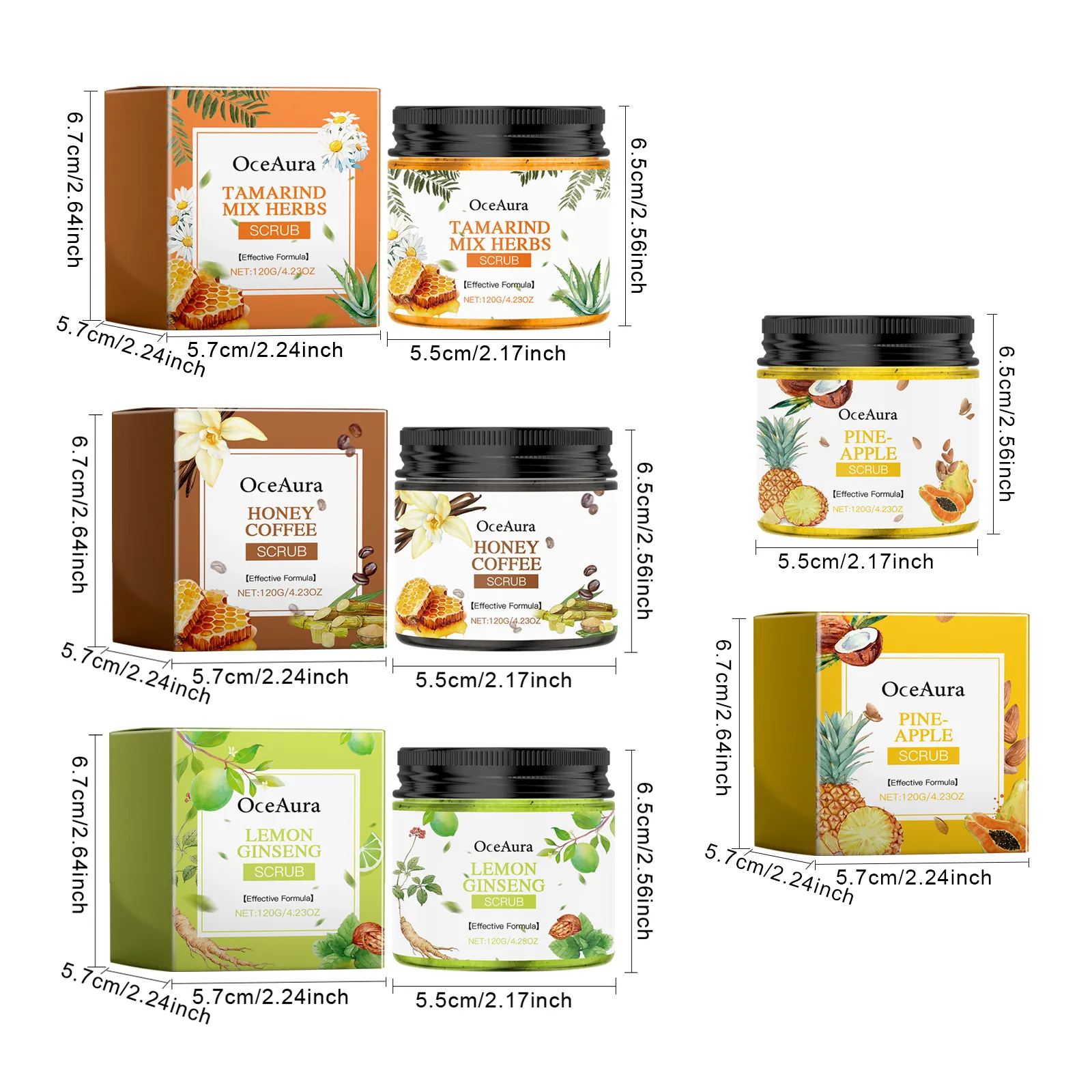 DescriptionMaterialOthersProduct AttributesOrdinaryPackage Size2*2*2(mm)Our body scrub (Tamarind Herbal) contains tamarind extract, oat flour, honey extract. It can help remove dead skin cells and make the skin look healthier and younger. The way to use it is simple: 1. First clean the skin with warm water to open the pores. 2. Apply an appropriate amount of scrub to the palm and apply to the wet skin. 3. Massage gently with your fingertips in circular motions and let the scrub sit on your skin for 1-2 minutes. 4. Finally, rinse the scrub thoroughly with warm water to avoid residual scrub particles. Suitable for all skin types, especially those that need to be exfoliated. Each use can significantly improve the skin.