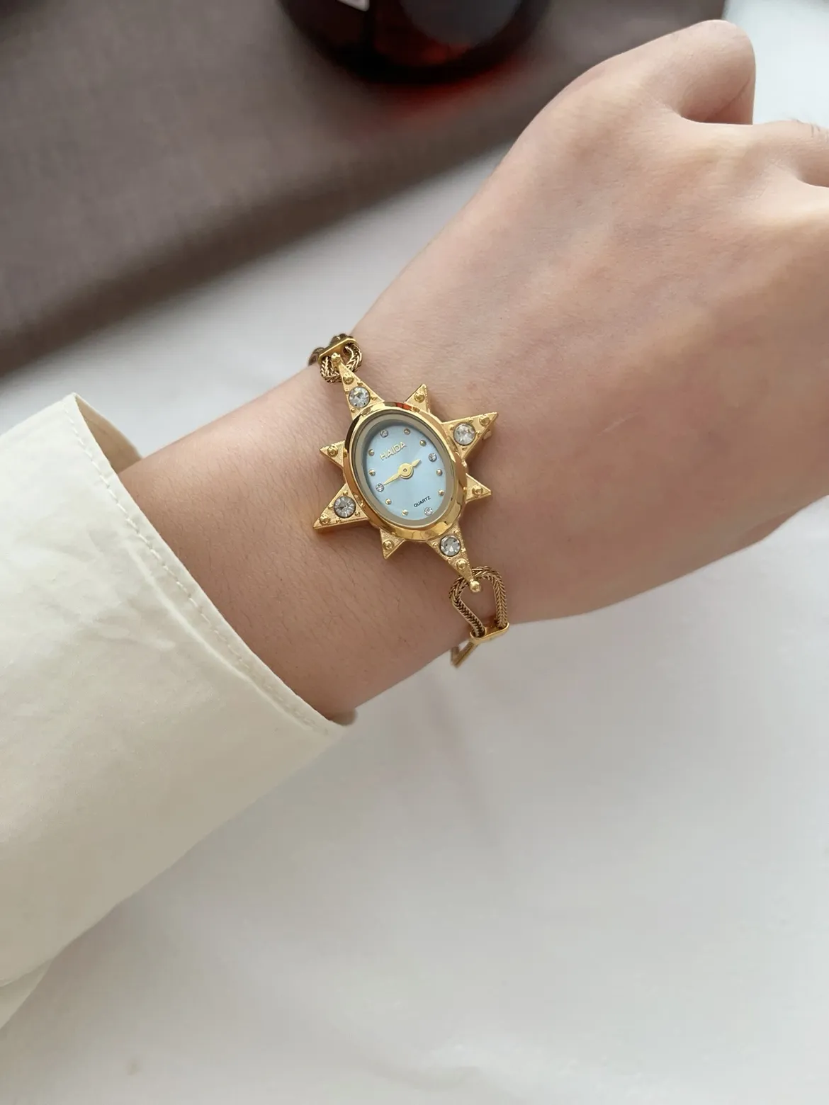 At the heart of the watch lies the star design dial, which adds an artistic touch and enhances the retro aesthetic. The star-shaped details bring an element of creativity and charm to the watch face, making it both a functional timepiece and an artistic accessory.