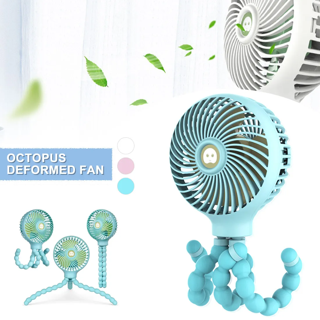 Octopus Deformed Folding Fan New USB Charging Mini Handheld Stroller Bed Small Fan Portable