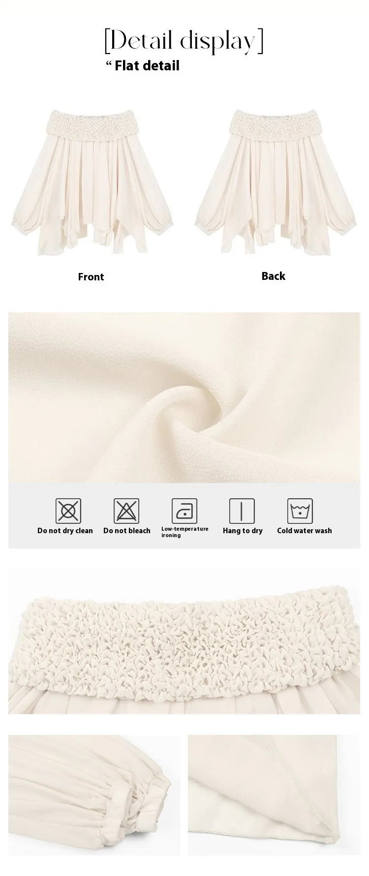 Off-Shoulder Long Sleeve Chiffon Shirt – Loose, Mid-Length Thin Top for Effortless Style