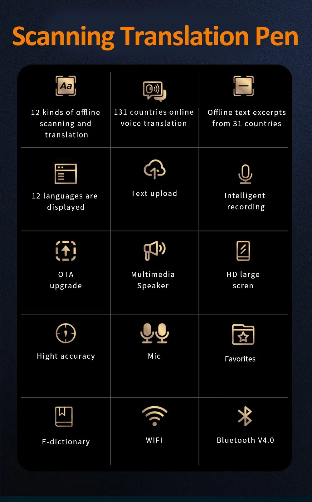 This pen supports over 40 languages, including major global languages like English, Spanish, French, German, Chinese, Japanese, and more. With built-in dictionaries, it allows you to translate both text and speech in real-time.