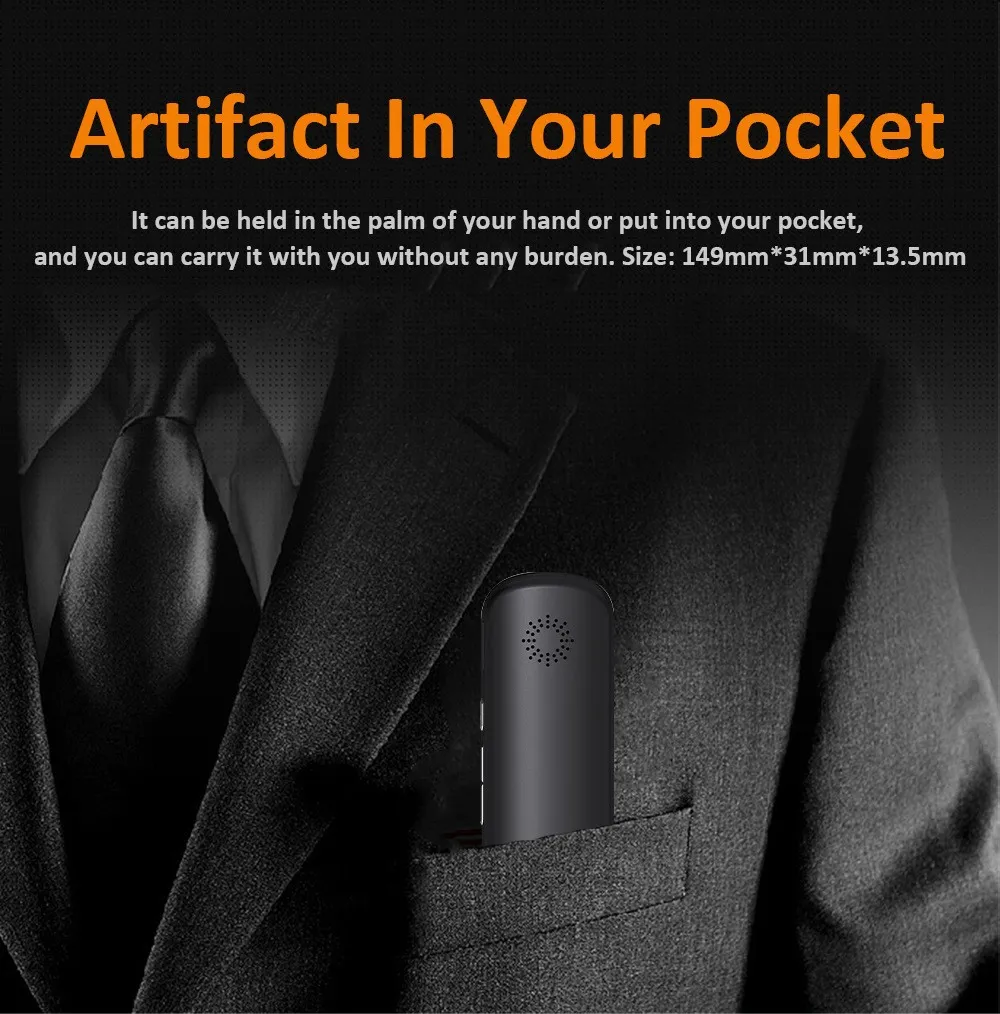 The device comes with a rechargeable battery that lasts for hours on a single charge, ensuring that it can support long translations on-the-go without the need to recharge frequently.