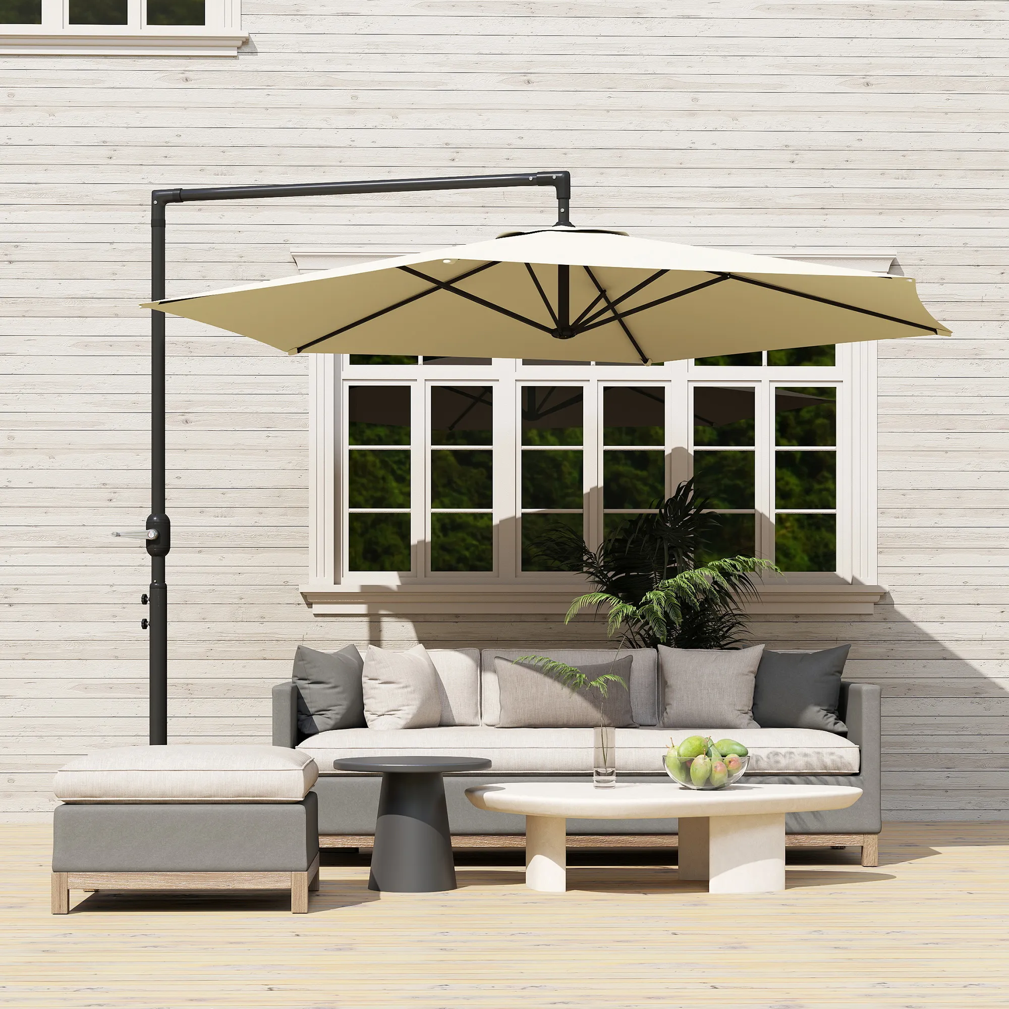 Description:Everyone loves a little sunshine, but sometimes too much will have you feeling the burn. Keep comfortable outside anytime with an Outsunny patio umbrella. Our cantilever umbrella offers you UV50+ protection no matter what outdoor furniture you already have. That's because an offset design lets our cantilever umbrella supply shade from the side. It's never too early to plan a personal oasis for the summer, and Outsunny has you covered no matter your needs. Get out, get comfy, get Outsunny. Features: - It fits outdoor furniture without an umbrella hole - Have more table space with an umbrella placed off to the side - Easy crank handle controls - Made of outdoor-ready polyester fabric (UV50+) and a steel frame for stability - Top vent and 6 ribs aid in wind resistance - Suitable for a park, garden, patio, beach or pool - Cross base included, weights not included - Assembly required Specification: - Color: Beige - Materials: 100% Polyester, Steel - Overall Dimensions: Dia. 114.6" x 96.5" H - Canopy Bottom Height: 75.2" H - Cross Base Size (Each Piece): 39.4" L x 3.5" W x 1.8" H - Item Label: 84D-318V00BG - NOTE 1: Required 121-143 lbs. weight (not included). Usable Outsunny Counterweight SKU: 84D-021 - NOTE 2: Do not use this garden umbrella during extreme weather (strong wind, heavy rain, snow) Package Includes: - 1 x Cantilever Patio Umbrella - 1 x Manual.